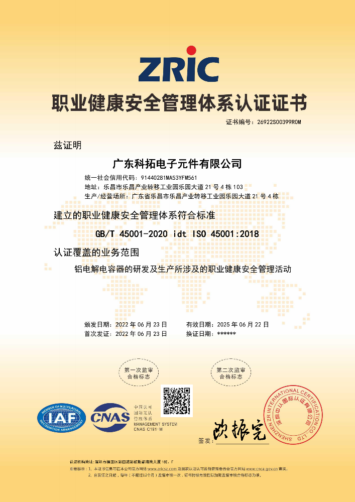 廣東科拓電子元件有限公司成立于2019年,位于韶關樂昌市樂昌產業轉移園區4棟,注冊資本2800萬元。現有廠房10000平米,員工300多人,鋁電解電容年產能達到40億只/年。公司前身深圳市科拓電子元件有限公司創建于1997年,生產鋁質電解電容器,經過二十年研發和開展自動化生產并持續不斷擴增經營規模,于2019年開設韶關生產基地。一直致力于高品質鋁電解電容器的開發和生產,同時采用領先生產工藝以及國內外先進的全自動化設備生產。本公司對于原材料之成份檢驗,以及整體制程工序方面,設置相關設備器材以支援質量控管,確保符合[rohs]指令要求,貫行綠色生產機制,贏得客戶信賴。本公司于電容器行業績逾25年經驗,其電容器產品享譽盛名,且建立強大客戶基礎。目前本公司鋁質電解電容器制造技術已相當成熟,產品尺寸規格齊全、具有長壽命、高電容、低阻、并且具備耐高溫、高壓的工作特性,多項主力產品均符合這些特點。科拓公司的使命是要為客戶提供一應俱全的電容器,以滿足世界各地的客戶的不同需求,為達到這個目標,科拓在各方面不斷努力,包括在研究及發展工作和生產設備上,不斷以做得更好并與客戶聯合發展產品,以及時在不同市場上推出新產品來滿足客戶的要求。公司通過了1S09001∶2008質量體系認證和lSO