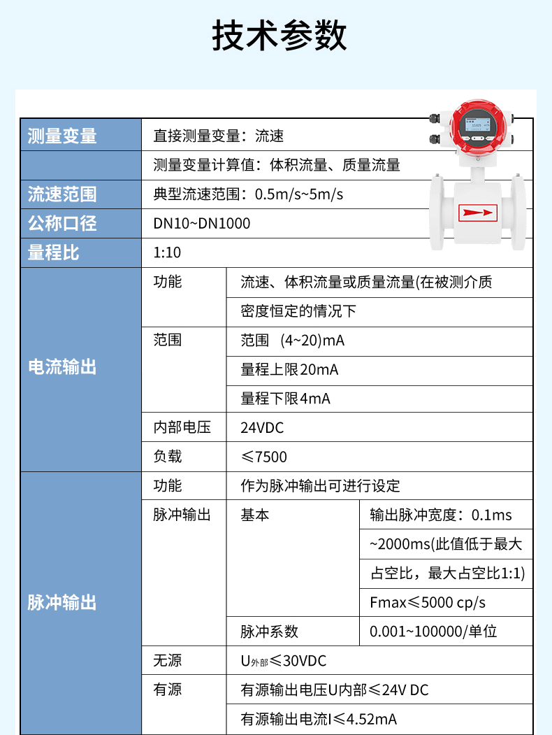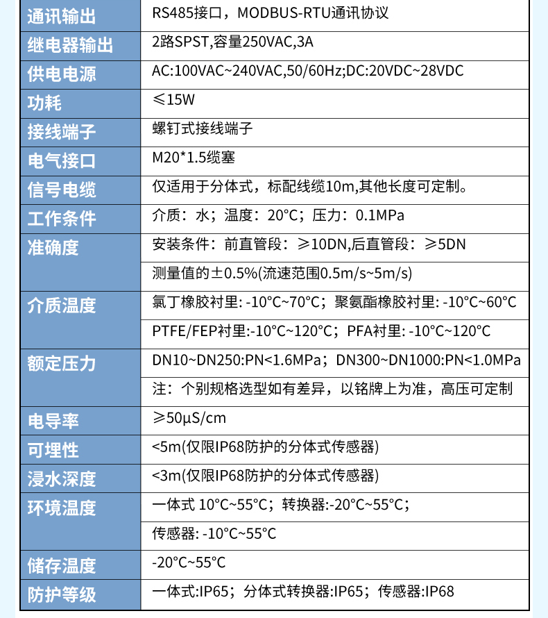 A100D電磁流量計:公稱通徑 DN10~DN1000
