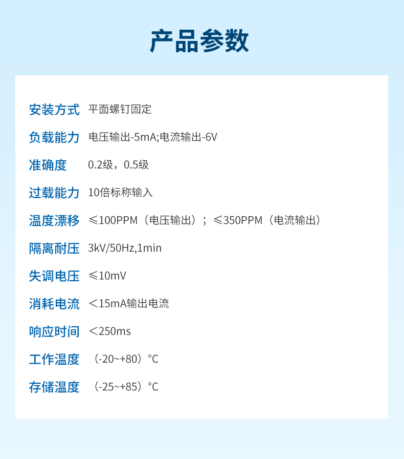 產(chǎn)品描述:穿孔式交流變送器是一種將被測(cè)交流參信號(hào)轉(zhuǎn)換成直流電流、直流電壓并隔離輸出模擬信號(hào)或數(shù)字信號(hào)的裝置。采用新型電磁隔離,24V輔助供電三重隔離標(biāo)準(zhǔn),穿孔式安裝標(biāo)準(zhǔn)導(dǎo)軌和螺釘安裝,安全可靠。