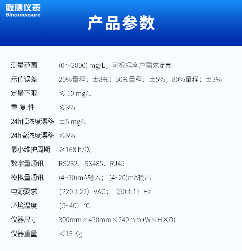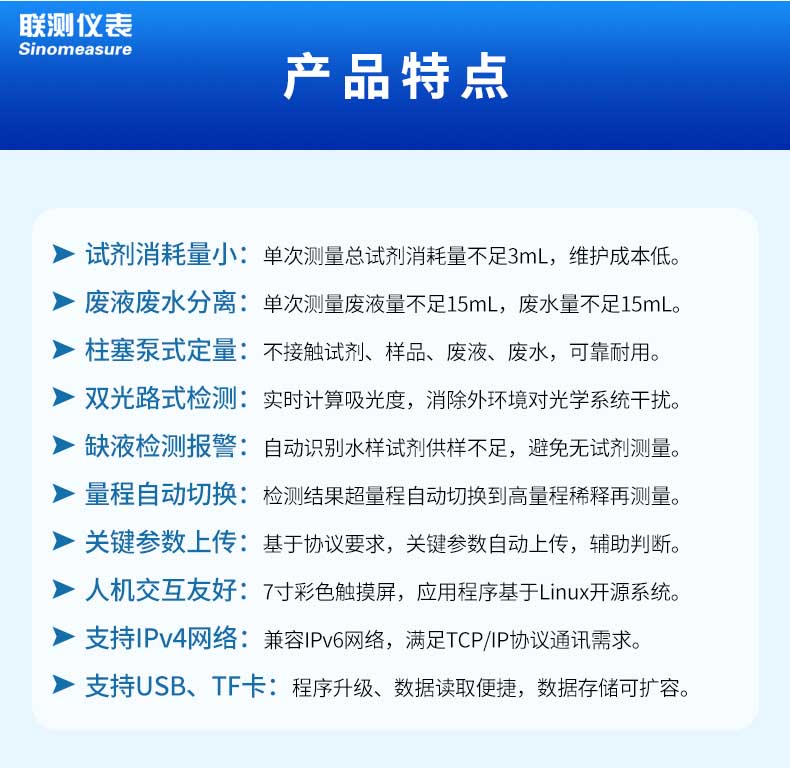 產(chǎn)品名稱:聯(lián)測(cè)_COD水質(zhì)在線分析_試劑消耗量小,雙光路式檢測(cè),支持USB、TF卡