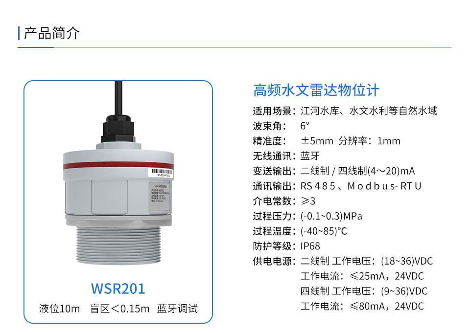 產(chǎn)品描述:雷達(dá)液位計(jì)是利用高頻微波雷達(dá)技術(shù)實(shí)現(xiàn)對(duì)水文信息的實(shí)時(shí)監(jiān)測(cè)和精準(zhǔn)測(cè)量。相較于傳統(tǒng)的水文監(jiān)測(cè)方法,雷達(dá)技術(shù)具有測(cè)量精度高、實(shí)時(shí)性強(qiáng)、適用范圍廣等優(yōu)勢(shì)。本產(chǎn)品波束能量低,對(duì)人體及環(huán)境均無(wú)傷害,還具有不受介質(zhì)比重的影響、不受介電常數(shù)變化的影響、不需要現(xiàn)場(chǎng)校調(diào)等優(yōu)點(diǎn),廣泛應(yīng)用江河、水庫(kù)、湖泊、灌渠、河道等自然水域水文監(jiān)測(cè)場(chǎng)合。