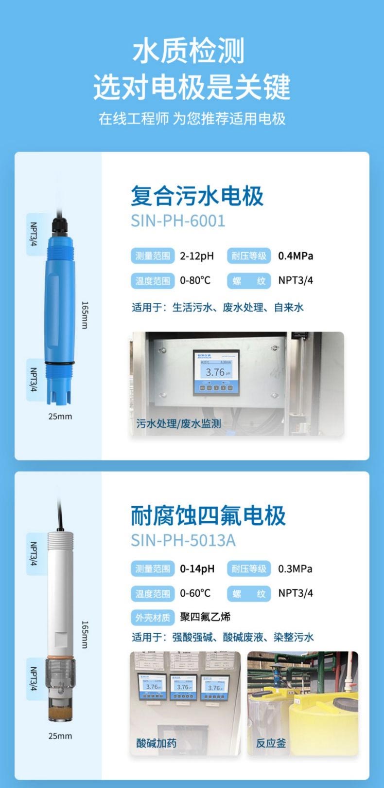 產品名稱:聯測-SIN-pH/ORP6.3/6.0升級款/污水/脫硫脫硝/加藥控制等場合