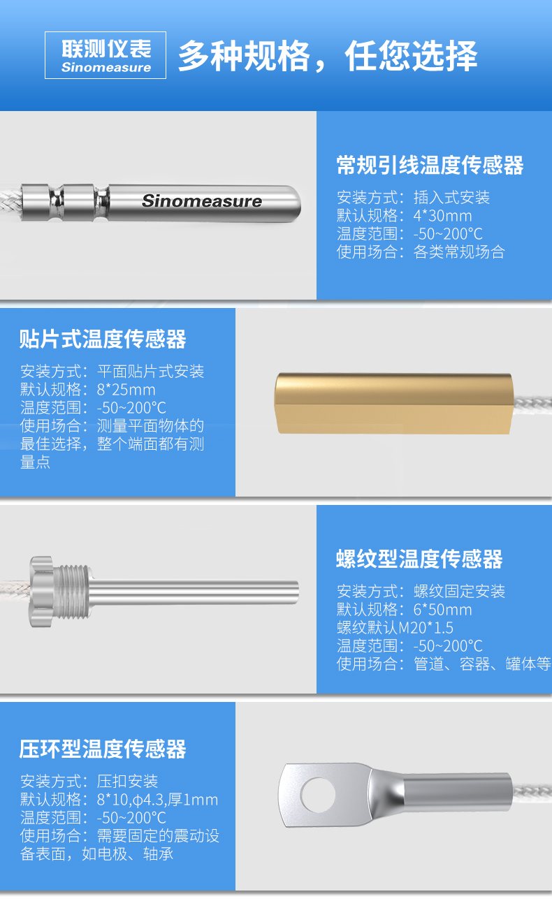 產(chǎn)品描述:聯(lián)測(cè)溫度傳感器可以直接測(cè)量各種生產(chǎn)過程中液體,蒸汽和氣體介質(zhì)以及固體表面的溫度,通常和顯示儀表、記錄儀表等配套使用。