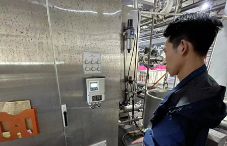 我司這次的渦輪流量計(jì)主要應(yīng)用于印染機(jī)上面的加水管道,主要配合PLC做染色機(jī)定量加水控制,得益于渦輪流量計(jì)的高響應(yīng)速度與較高的精度,保證了染色程度的精準(zhǔn)控制。