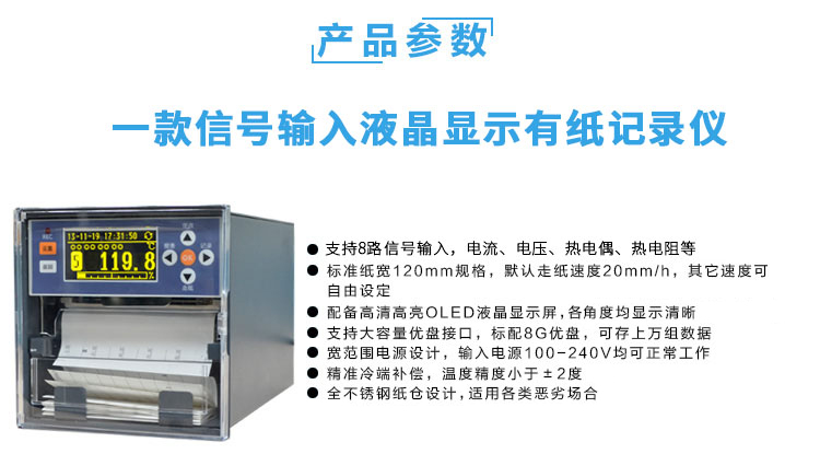 產(chǎn)品描述:混合式打印記錄儀是專(zhuān)業(yè)針對(duì)工業(yè)現(xiàn)場(chǎng)設(shè)計(jì)的多功能智能記錄儀。 提供多路高精度模擬信號(hào)輸入通道,可配置多路報(bào)警,提供傳感器配電; 采用高精度熱敏打印機(jī),實(shí)現(xiàn)數(shù)據(jù)、曲線(xiàn)和混合打印;配備有高亮高清 晰 OLED 液晶屏,提供實(shí)時(shí)數(shù)據(jù)顯示。