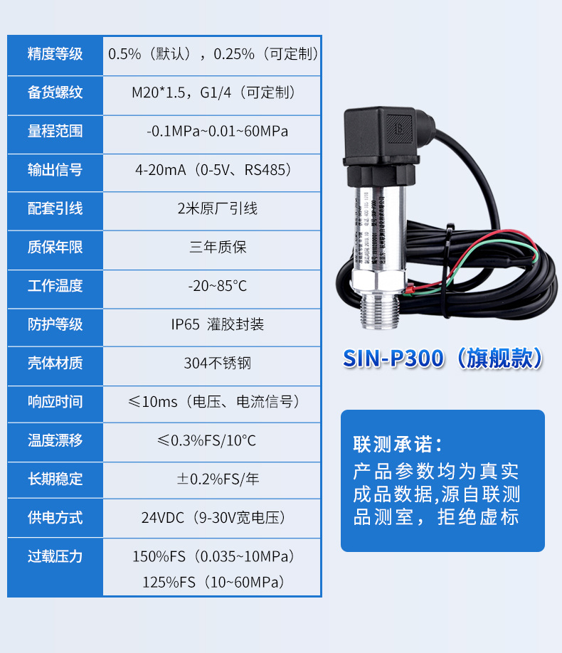 產(chǎn)品名稱:聯(lián)測_SIN-P300 -擴(kuò)散硅壓力變送器 -批量價(jià)199元/支 ,3年質(zhì)保, 常規(guī)現(xiàn)貨