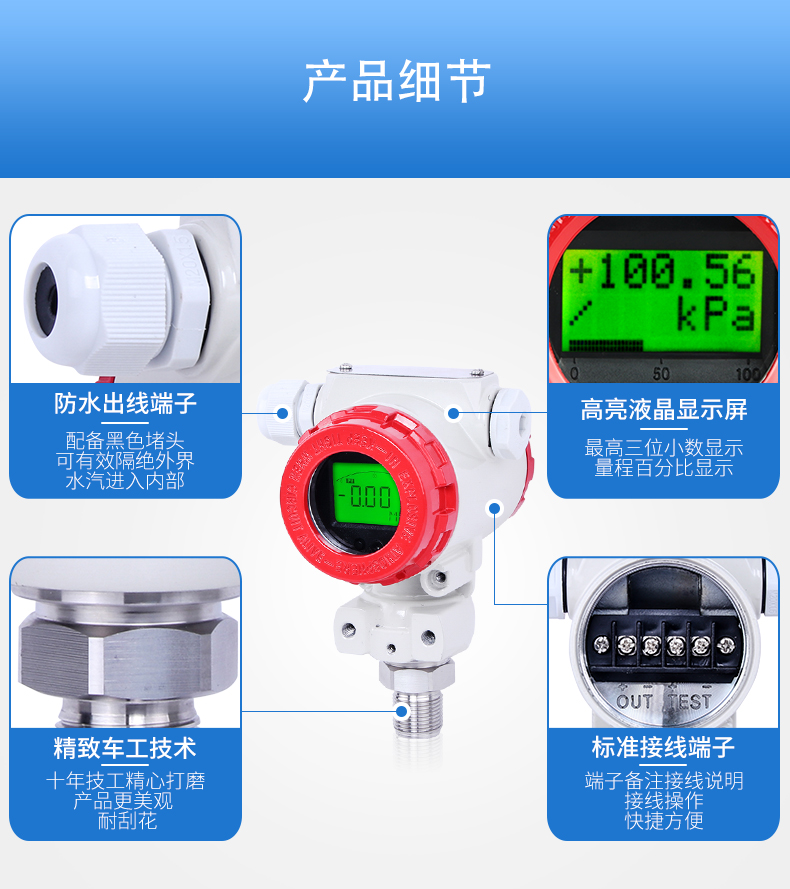 產(chǎn)品描述:壓力變送器壓力敏感核心采用了高性能的硅壓阻式壓力 充油芯體,內(nèi)部的專用集成電路將傳感器毫伏信號(hào)轉(zhuǎn)換成標(biāo) 準(zhǔn)遠(yuǎn)距離傳輸?shù)碾娏餍盘?hào),可以直接與計(jì)算機(jī)接口卡、控制 儀表、智能儀表或 PLC 等方便相連。該系列產(chǎn)品廣泛應(yīng)用于 工業(yè)過程控制、石油、化工、冶金等行業(yè)。