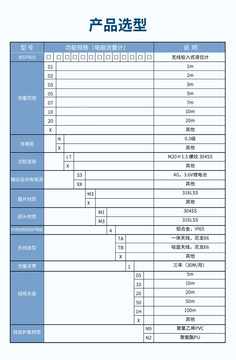 產品描述:無線投入式液位計是基于 4G 無線通訊網絡使液位的測量、變送、上報為一體的低功耗智能儀表。集成高靈敏度液位檢測元件,高精度信號調理電路,低功耗電池電源管理,豐富的 LCD 顯示界面于一體。周期性上報液位測量值、電池電量、信號質量等數據,并且能夠當液位超出設置范圍時及時報警,提前預警故障隱患。本產品適合油田、水利、消防管網、自來水管網、城市供熱管網等智慧城市應用場景。