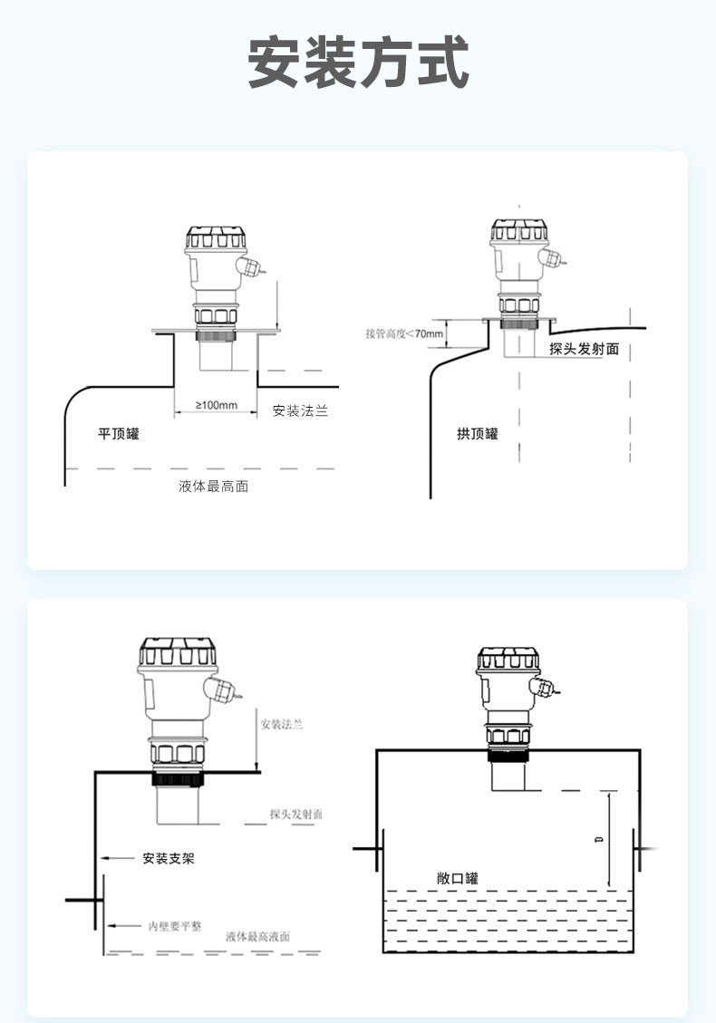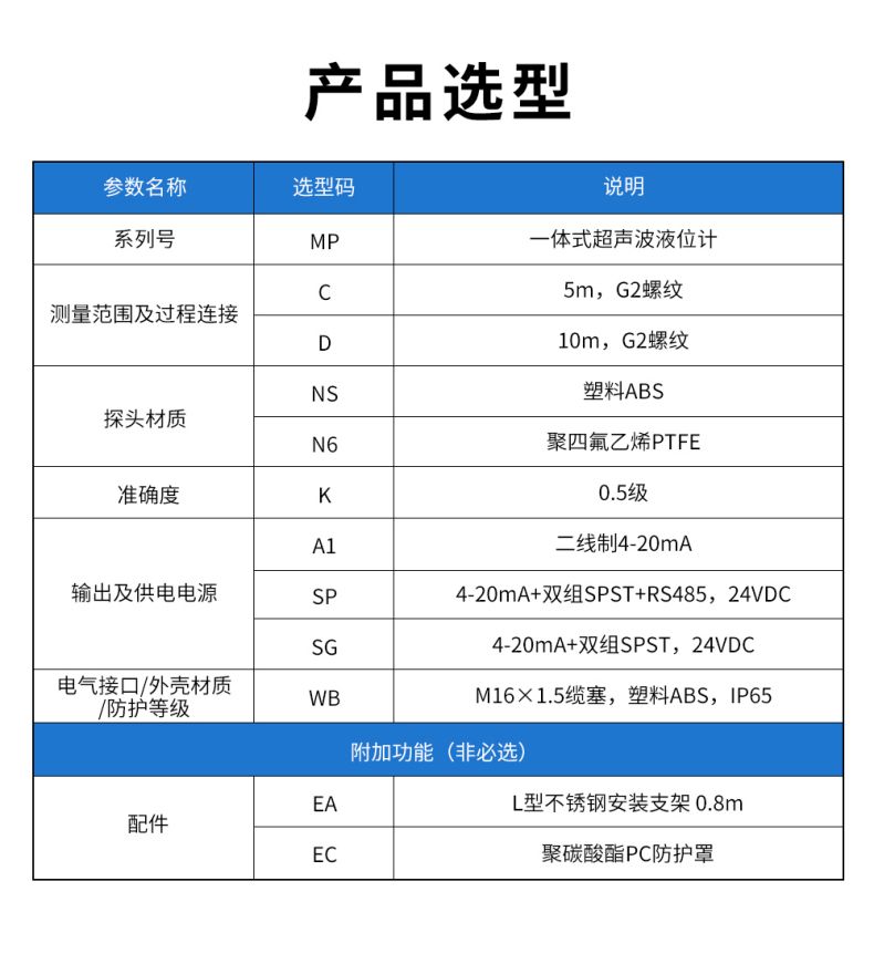 產品描述:超聲波液位計(測量液位/物位),是一種非接觸式、高可靠性、高 性價比、易安裝維護的液位/物位測量儀器。它不需接觸被測量介質就能 滿足大部分液位/物位測量要求,是本公司具有完全自主產權的新一代超聲波液位計。