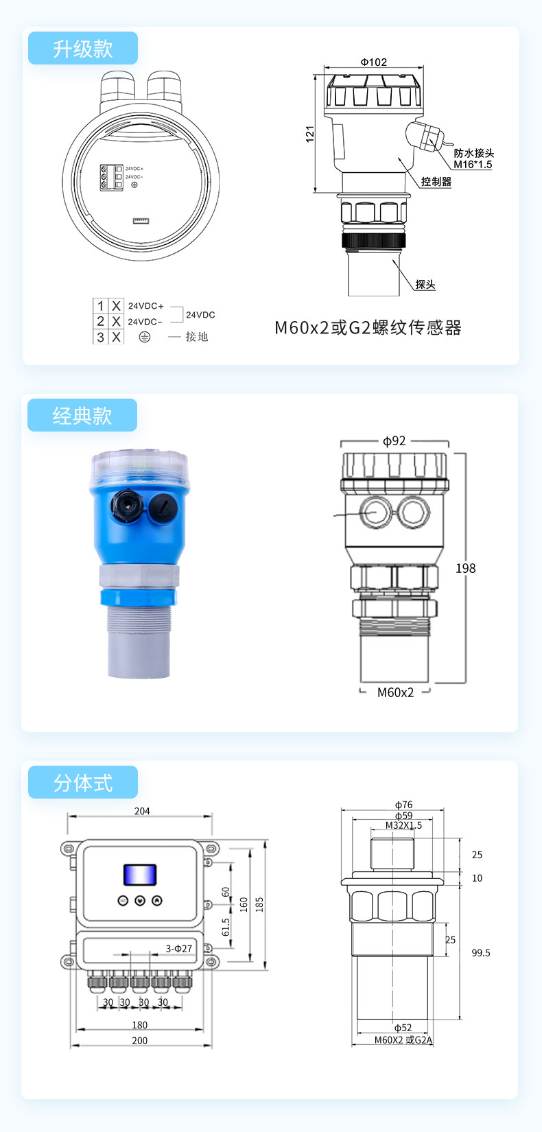 產品名稱:聯測_SIN-MP-C_升級款_0.5%精度_污水處理、河道、水庫、罐體物位監測
