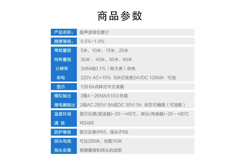 產品描述:超聲波物位差計(料位,液位),是用來測量兩個不同容器的液位 或者料位之間的高低差別。