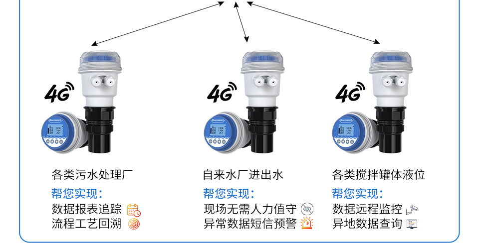 產(chǎn)品描述:WSU-200 4G物聯(lián)超聲波液位計(jì)具有高可靠性、高性價(jià)比、易安裝維護(hù)的液位/物位測(cè)量?jī)x器,可廣泛用于各種液體和固體物料高度的測(cè)量。本產(chǎn)品可選配 NB-IoT 無(wú)線通訊功能,用戶可在儀表云平臺(tái)進(jìn)行數(shù)據(jù)查看和遠(yuǎn)程監(jiān)控。常見(jiàn)的應(yīng)用工況,如市政、化工、儲(chǔ)運(yùn)等工業(yè)環(huán)境中的河流、水池、儲(chǔ)罐等液位測(cè)量。咨詢熱線:400-185-1718
