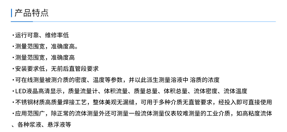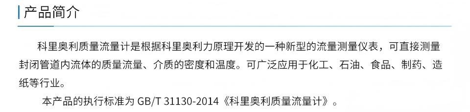 產(chǎn)品描述:聯(lián)測FCC300科里奧利質(zhì)量流量計(jì)是根據(jù)科里奧利力原理開發(fā)的一種新型的流量測量儀表,可直接測量封閉管道內(nèi)流體的質(zhì)量流量、介質(zhì)的密度和溫度。可廣泛應(yīng)用于化工、石油、食品、制藥、造紙等行業(yè)。咨詢熱線:400-185-1718